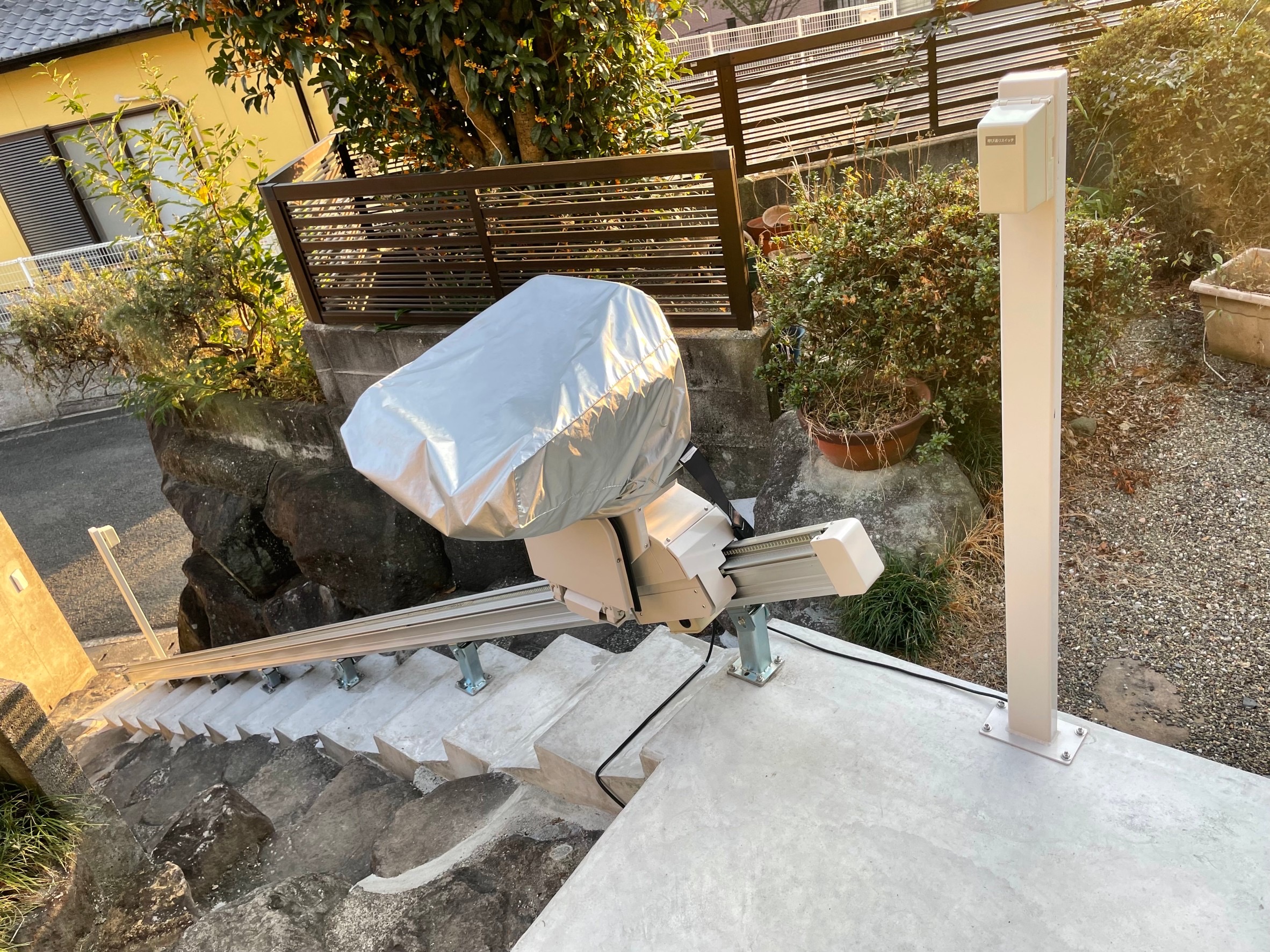 知人の紹介で、案内された場所が、城壁(石垣)3メートル以上あるうかと思われる自然石で積み上げた石垣。 自然石で積み上げられたランダムな階段に電動昇降機を取り付けたいと言う要望でした。