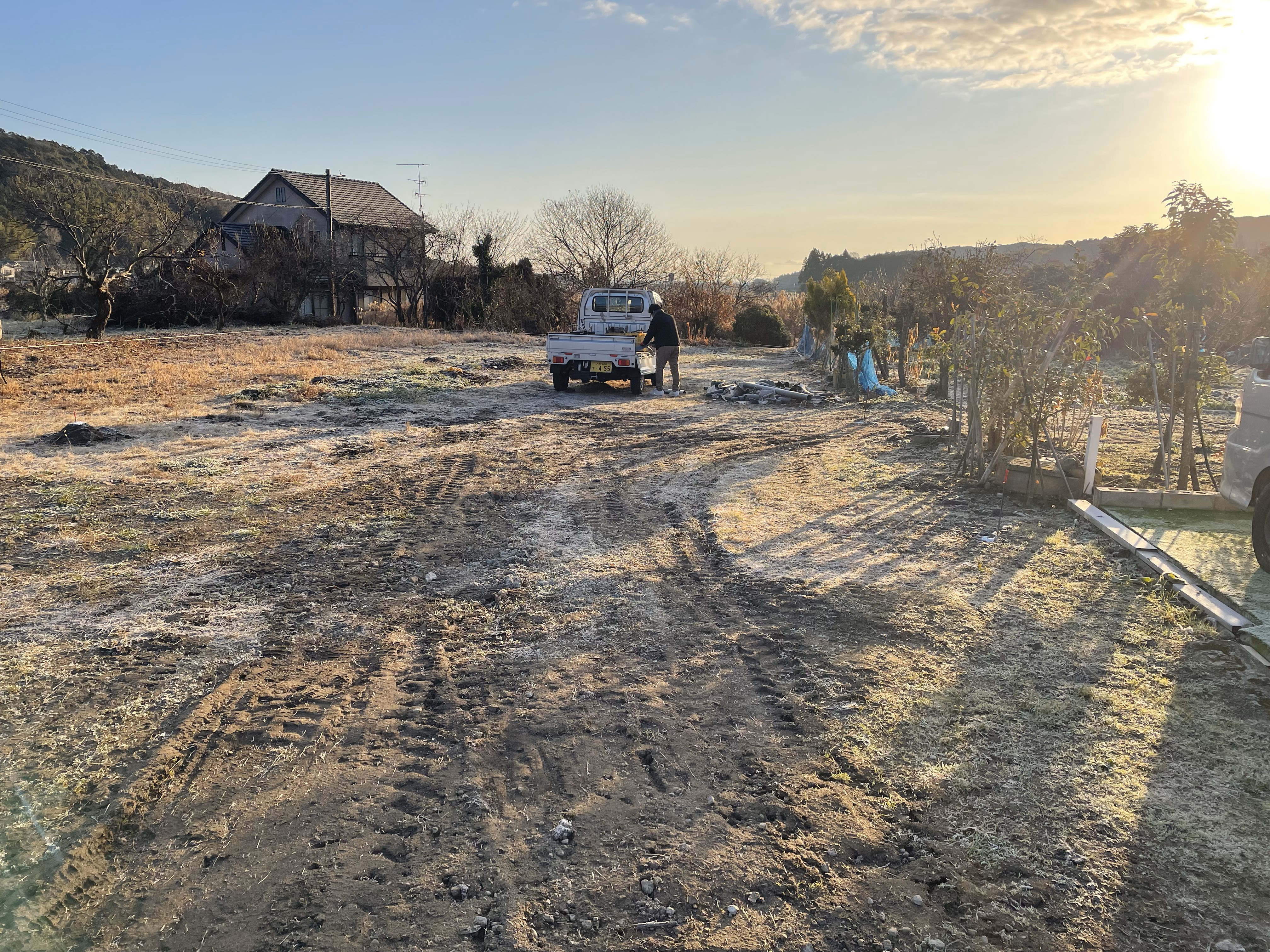 ①鋤取り・・・人が通る程度であれば2~3㎝、駐車スペースにするのであれば5~6㎝も漉き取れば問題ありません