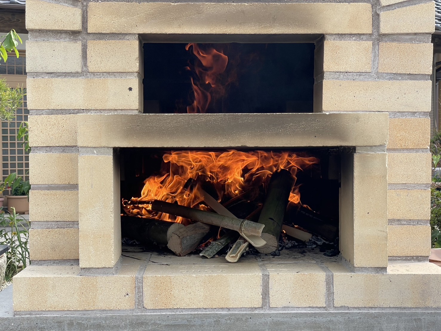火を着けてからピザが焼ける温度までにするのに2,3時間必要で思っていた以上に薪が必要になります。