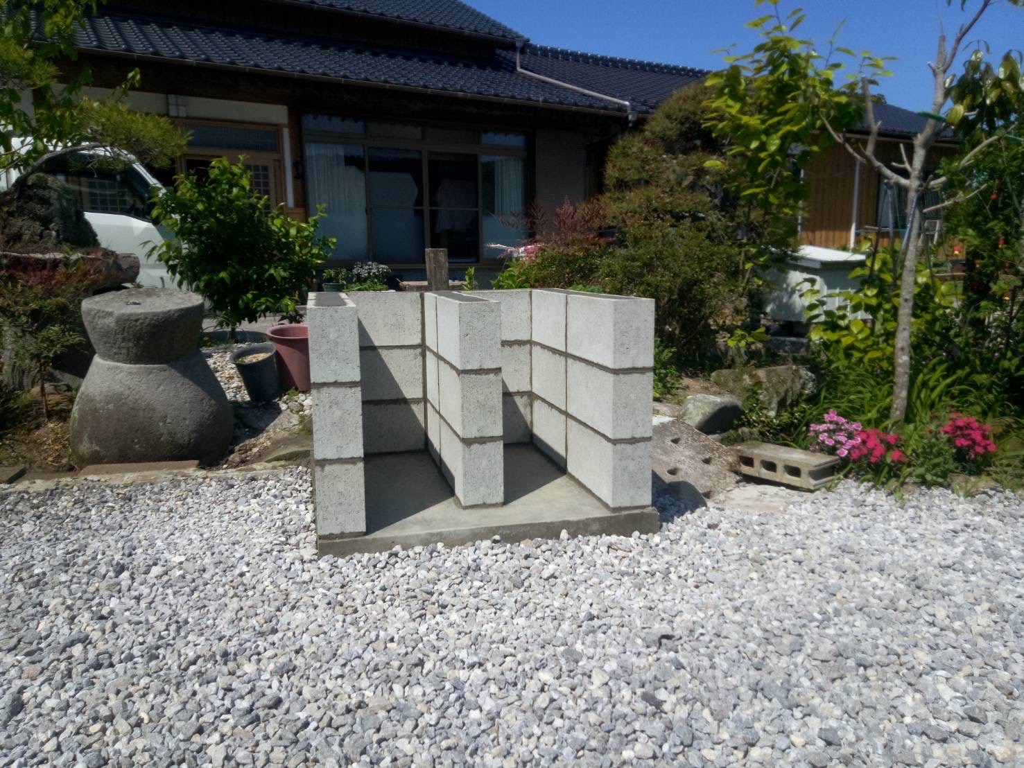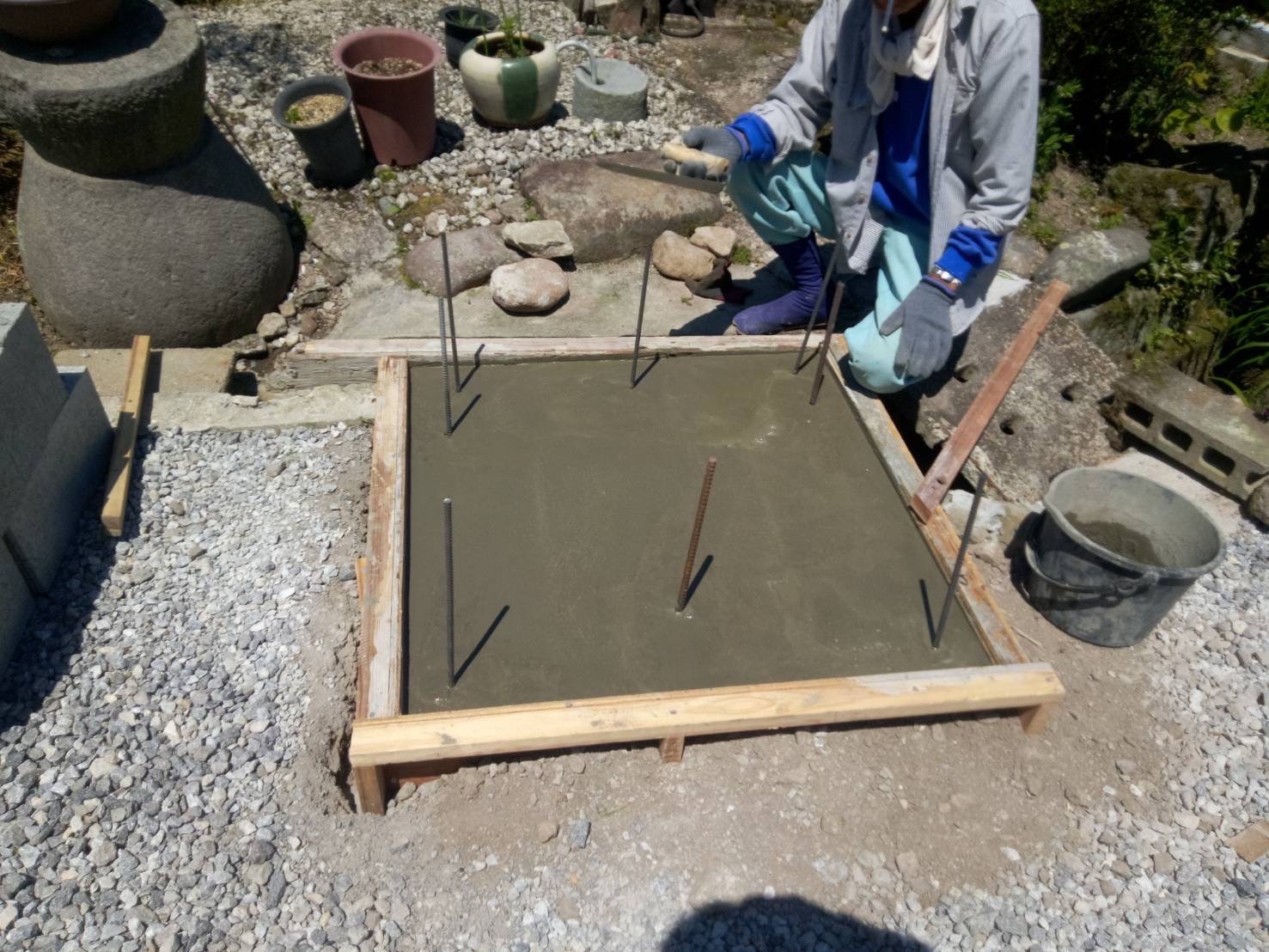土台はコンクリートブロックを3段積み上げ、その上に厚さ65mmのコンクリート台座を乗せました。