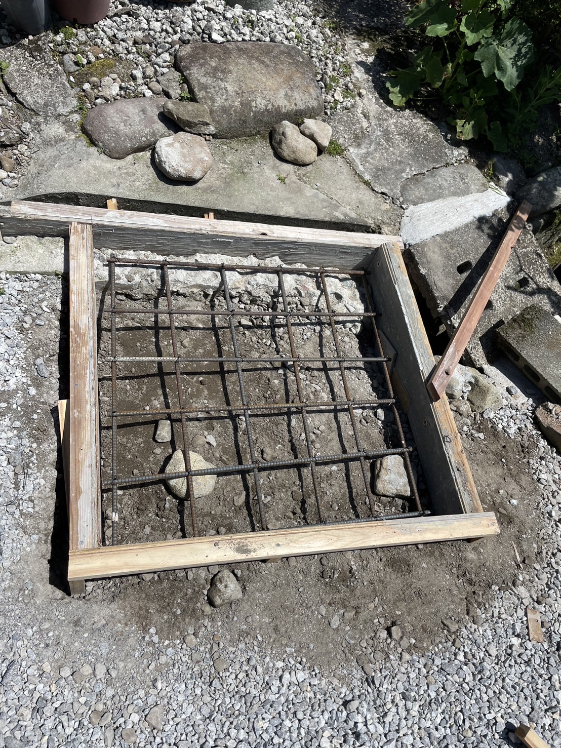 ピザ窯用の台座鉄筋コンクリート950㎝×950㎝×10㎝